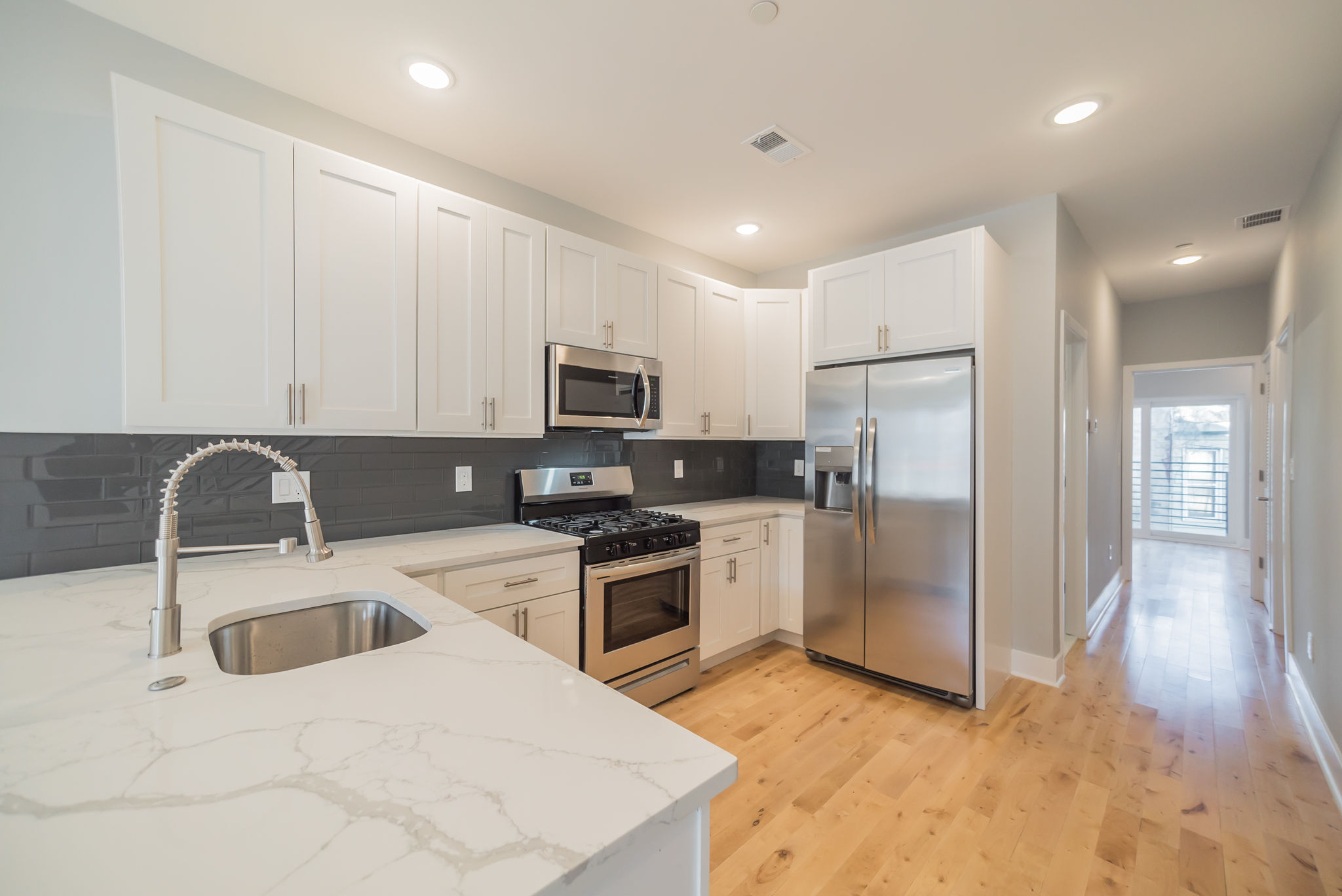 As a newly constructed duplex, 2535 Cecil B Moore offers modern interior finishes such as hardwood floors, stainless steel appliances, tiled bathrooms, quartz countertops, and keyless entry. Step outside to the private rear yard access, or admire the Philadelphia skyline from the private roof deck. This location is highly walkable and bikeable to the many local restaurants, breweries and coffee shops that Brewerytown has to offer.